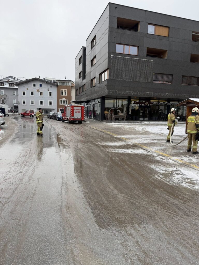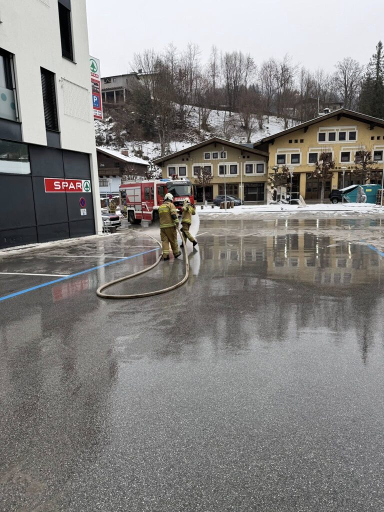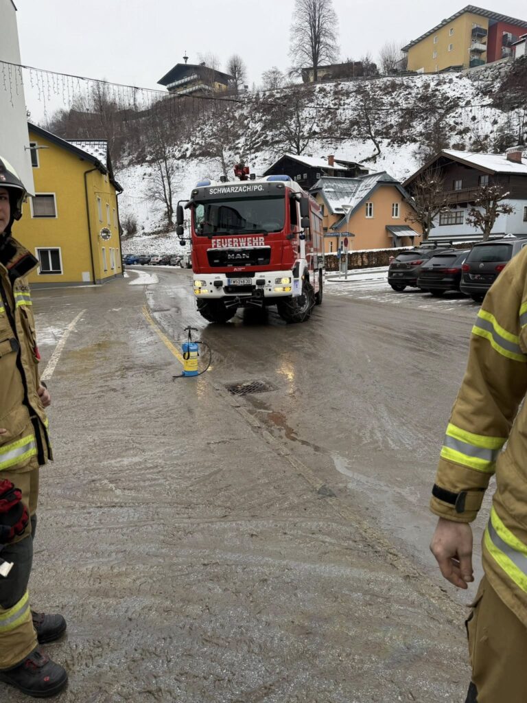 Über Piepseralarm wurde die Feuerwehr um 09:14 Uhr zu einem Öleinsatz im Markt alarmiert. Unverzüglich rückte die Feuerwehr mit KDTFA, VRFA und RLFA zum Einsatz aus. Vor Ort stellte der Einsatzleiter eine großflächige Ölverunreinigung fest. Als erste Einsatzmaßnahme wurde der gesamte Marktbereich und der Parkplatz abgesperrt. Nach Rücksprache mit dem Katastrophenschutzreferenten der BH St. Johann wurde auf der gesamten Fläche Ölbindemittel aufgebracht und danach der gesamte verunreinigte Platz anschließend mit Wasser gereinigt. Der Einsatzleiter alarmierte den Streuwagen des Bauhofes der Marktgemeinde Schwarzach, damit nach Abschluss der Reinigungsarbeiten, aufgrund der niedrigen Temperaturen, die Fahrbahn mit Split abgestreut werden konnte. Nach Beendigung der Arbeiten wurde die Sperre aufgehoben und der Einsatzleiter konnte den Einsatz nach Wiederherstellung der Einsatzbereitschaft abschließen.