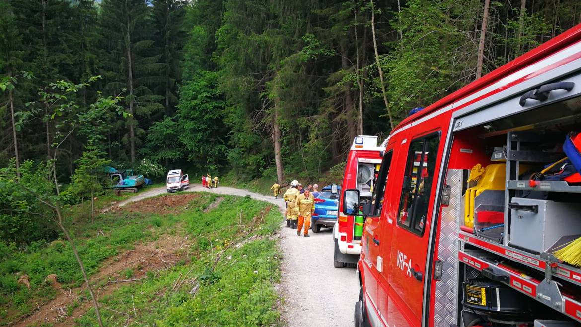 Die LAWZ Salzburg alarmierte mittels Sirenenalarm um die Feuerwehr Goldegg und den technischen Zug der Feuerwehr Schwarzach zu einem Verkehrsunfall mit eingeklemmter Person in den Goldegger Ortsteil Oberhof. Da sich der Einsatzort laut erster Lagemeldung der LAWZ auf einem Forstweg befand und mit LKW nicht zufahrbar ist, rückte unverzüglich VRFA und MTFA nach Goldegg aus. Beim Eintreffen wurde eine verunfallte Radfahrerin vorgefunden, die mit ihrem Fuß zwischen Pedal und Fahrradrahmen einklemmt war. Durch die Einsatzmannschaft wurde sofort das hydraulische Rettungsgerät in Stellung gebracht. Der Einsatzleiter entschied aber, das Pedal doch mit dem Trennschleifer abzuschneiden. Nach sorgfältiger Arbeit konnte der Fuß schnell befreit werden. Anschließend wurde das Rote Kreuz bei der Versorgung noch unterstützt. Nach Abtransport der Patientin in das Krankenhaus konnte der Einsatz beendet werden.