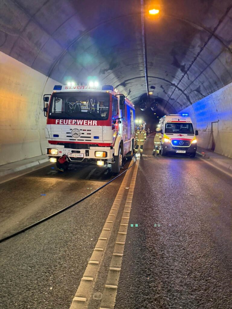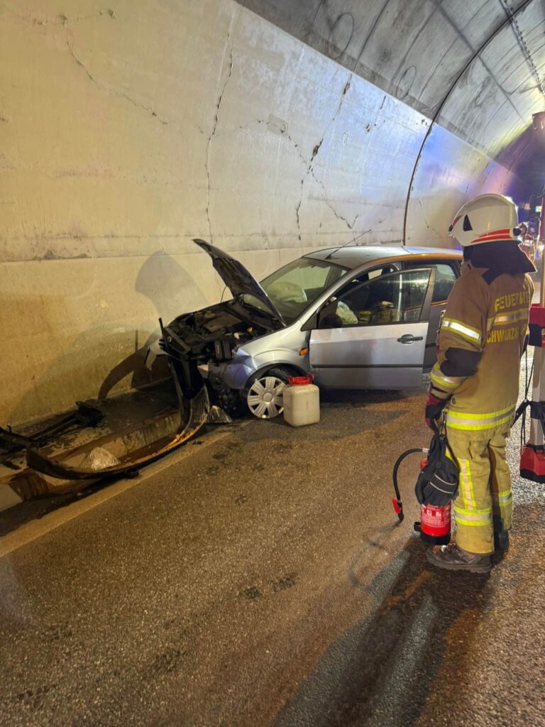 Zu einem Verkehrsunfall wurde die Feuerwehr über Sirenenalarm um 05:08 Uhr in den Schönbergtunnel alarmiert. Gemäß Sonderalarmplan Tunnel wurde auch die Feuerwehr St. Veit zum Einsatz angefordert. Unverzüglich rückte KDTFA, VRFA, RLFA und TLFA zum Einsatz aus. Beim Eintreffen des Einsatzleiters stellte sich folgende Lage dar. Ein schwer beschädigtes Fahrzeug mit einer verletzten Person im Tunnel. Durch die Einsatzkräfte wurde eine Beleuchtung sowie ein Brandschutz errichtet. Durch TLFA Schwarzach und LFA St. Veit wurden die beiden Portale abgesichert. Bis zum Eintreffen des Notarztes und des Roten Kreuz wurde die verletzte Person betreut. Nach dem Abtransport der verletzten Person in das Klinikum wurde die Unfallstelle von der Polizei aufgenommen und ein privates Abschleppunternehmen bei der Fahrzeugbergung unterstützt. Gleichzeitig wurden herumliegende Teile und ausgeflossene Betriebsmittel aufgebunden. Nach Abschluss der Arbeiten konnte der Einsatzleiter den Einsatz beenden und die Feuerwehrkräfte aus Schwarzach und St. Veit wieder in die Feuerwehrhäuser einrücken.